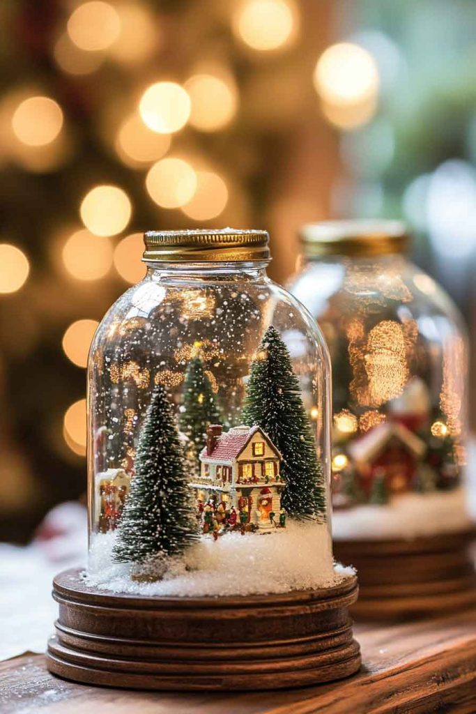 2. Mason Jar Snow Globes with Miniature Christmas Scenes