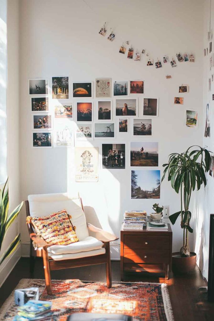 Bring memories from home by creating a photo wall or gallery. This is one of the easiest ways to personalize your space and feel connected to family and friends. Use removable adhesive strips, washi tape, or a photo clip string to display your favorite pictures.