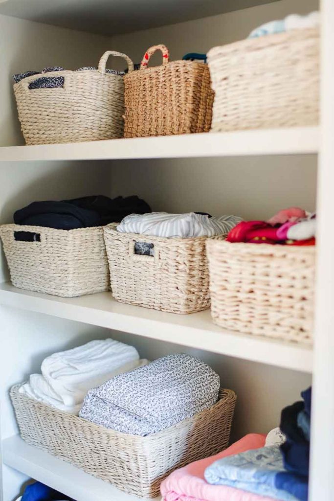 Choose baskets that match your room’s aesthetic – woven baskets for a natural look, wire baskets for industrial style, or fabric bins in fun colors and patterns.