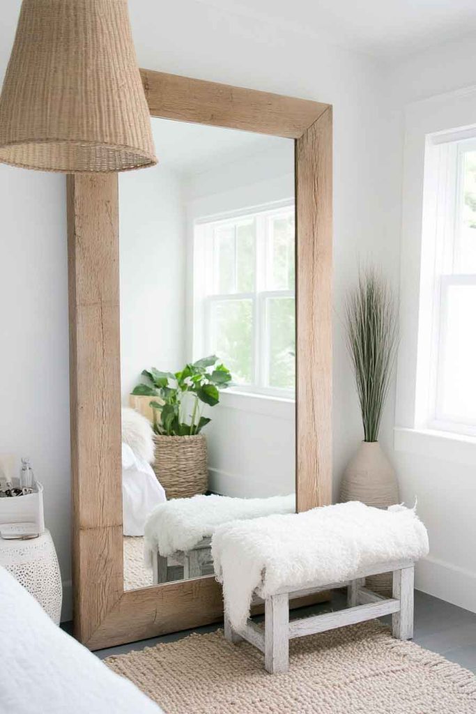 A full-length mirror is practical for getting ready but also makes your room feel larger and brighter by reflecting light. Hang an over-the-door mirror or lean a large mirror against the wall.