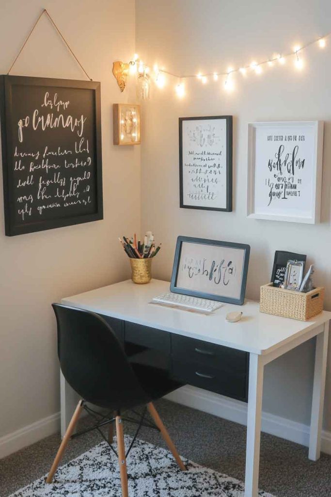 Decorate with small plants, inspiring quotes, or a small bulletin board where you can pin important reminders and to-do lists. A comfortable desk chair cushion can make long study sessions more bearable.