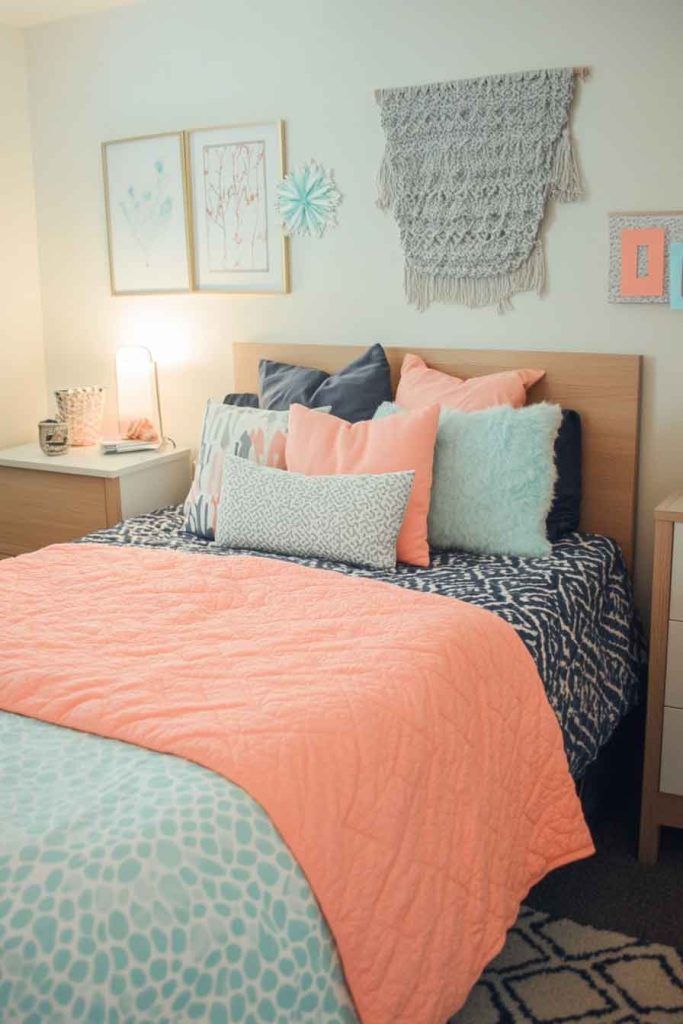 Your bed is likely the largest piece of furniture in your dorm room, so make it count. Invest in comfortable, quality bedding that reflects your style. Choose coordinating sheets, comforters, and pillows in colors or patterns you love.