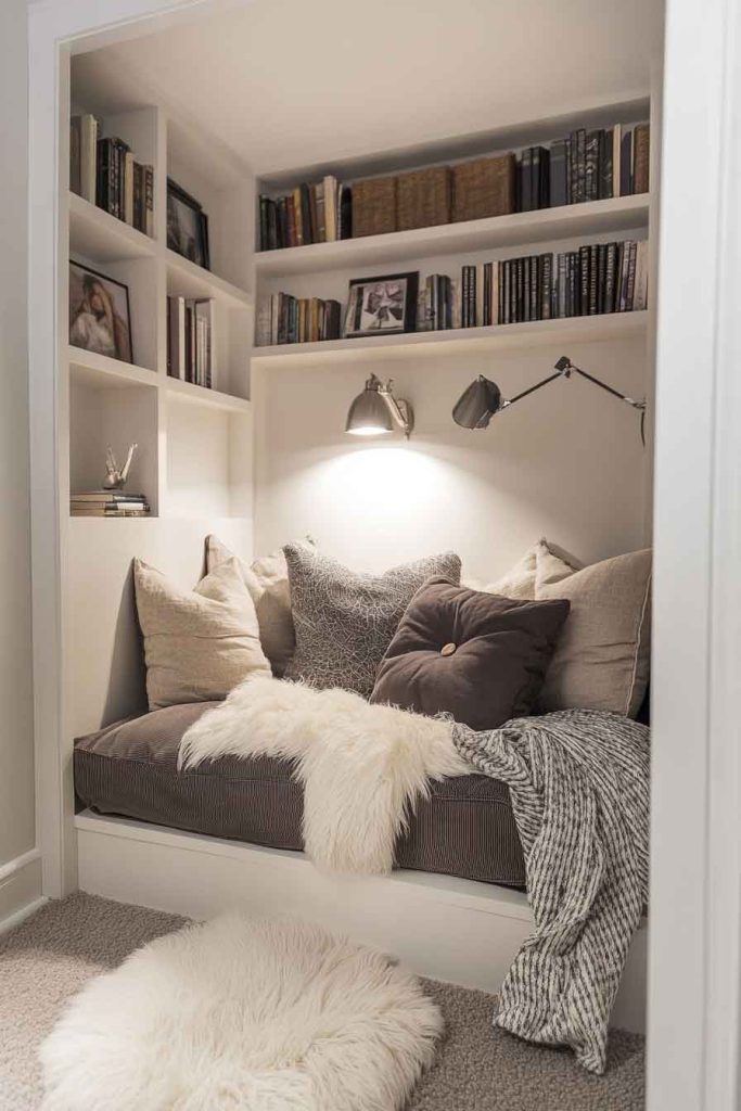 Add a small bookshelf nearby to keep your favorite books within reach. This creates a designated space for relaxation separate from your study and sleep areas.