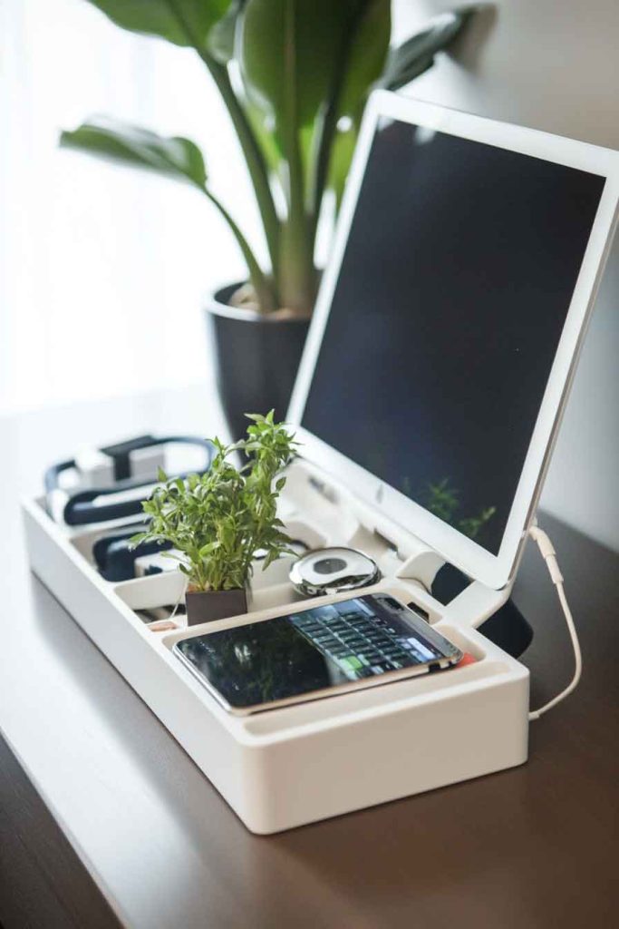 With multiple devices needing charging, cable management is essential. Use cord organizers, cable clips, or a charging station to keep cords neat and prevent tangling.