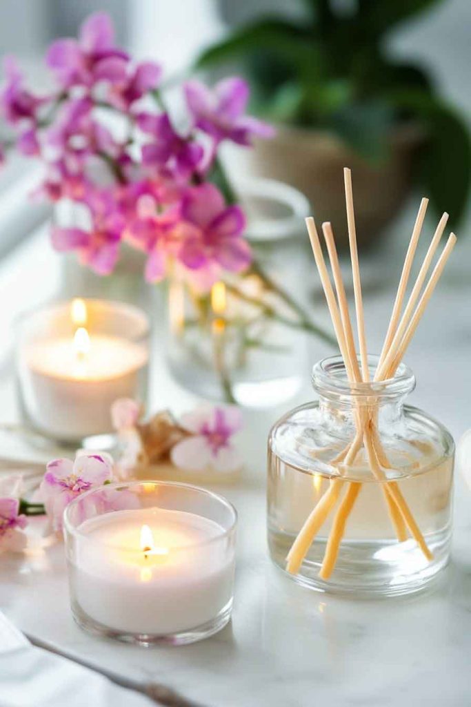 Don’t overlook scent when decorating your dorm. A good-smelling room feels cleaner and more inviting. Use candles (if allowed), wax warmers, reed diffusers, or room sprays to keep your space smelling fresh.